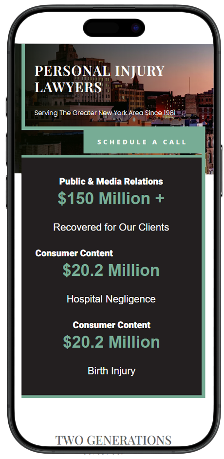 Nick Johnston Law is a professional mockup website crafted for personal injury law firms, featuring a clean and structured layout that emphasizes client recovery and expertise in cases like car accidents, wrongful death, medical malpractice, and more. The homepage includes placeholder highlights such as substantial client recoveries and notable verdicts to demonstrate potential impact, alongside intuitive navigation to practice areas, attorney profiles,, glowing testimonials, and insightful blogs. Customizable for any law firm regardless of location, it offers easy contact options and a contingency fee model, blending professionalism with user-friendly accessibility.